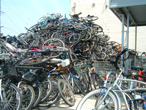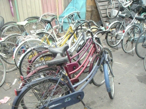 その一方で自転車が入ってくることもあり(写真右)、大変な忙しさです。